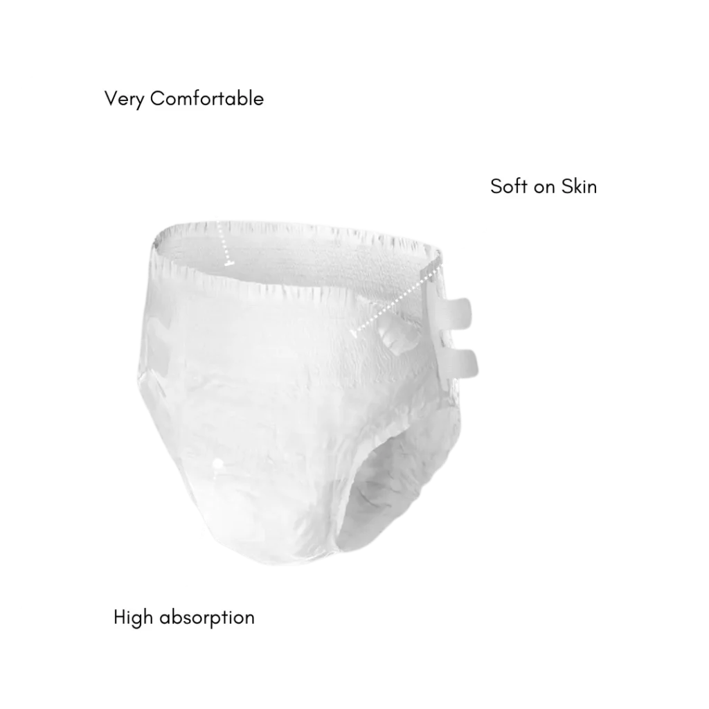 areIn Classic Adult Diaper Pants, XXL-XXXL, 101 – 165 Cm (40″- 65″), Unisex, Leakproof, Elastic Waist, Wetness Indicator,30 Count (Copy)